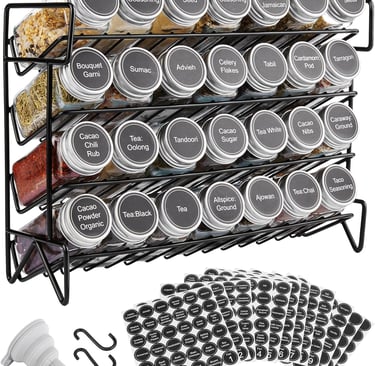 The four-tier spice organizer is thoughtfully designed to offer an extensive capacity, making it a valuable addition to any kitchen. With dimensions that are optimized for counter or shelf placement, the spice rack maximizes space while maintaining easy accessibility. Each tier of the rack is capable of holding a selection of spices, and the 28 included 4-ounce jars are the perfect size for typical spice collections. This ensures that home chefs can store a wide variety of spices without taking up excessive room.